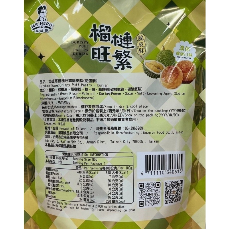 榴槤控的酥脆首選!英雄哥《榴槤旺繁》將熱帶果王的濃郁,完美封存於金黃層次皮之中。