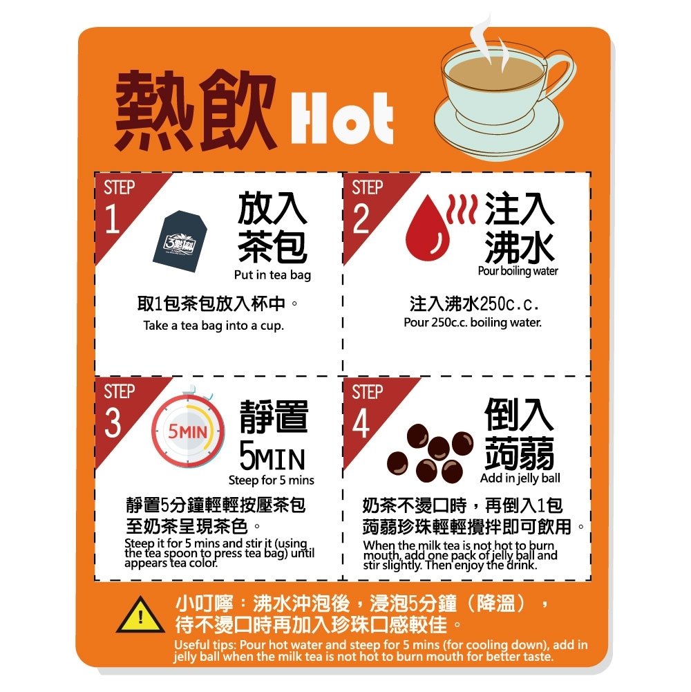 最特別的是一包茶包搭配一包蒟蒻珍珠,沖泡方式簡單,5分鐘就可以自己泡出一杯「黑糖蒟蒻珍珠奶茶」,冷熱都好喝。