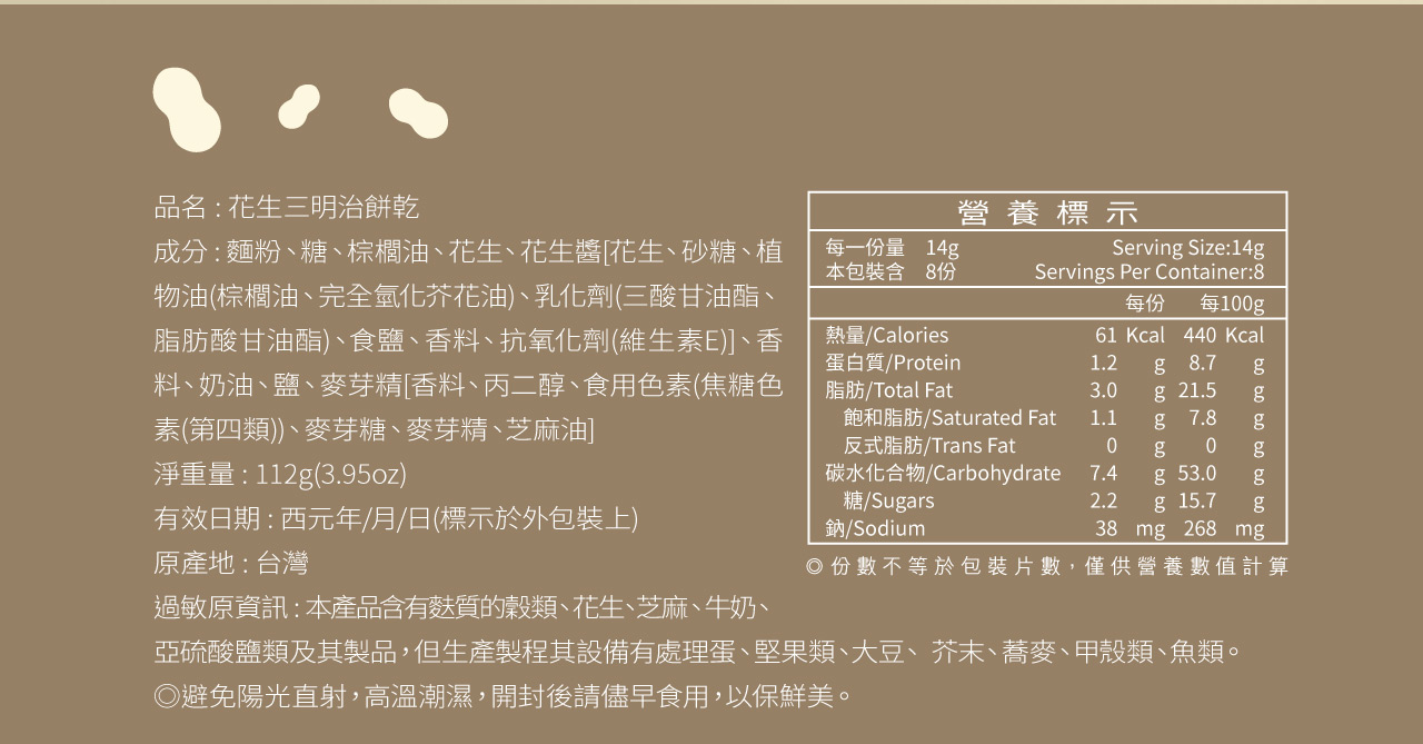 這款台灣花生三明治餅乾,口感香脆紮實,融合濃郁烘焙花生香,甜中帶鹹,越吃越涮嘴。