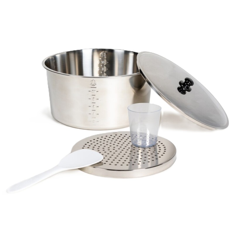材質:鍋蓋、外鍋與內鍋皆採用 SUS 304 食品級不鏽鋼製成,不含化學塗層,使用更安心。