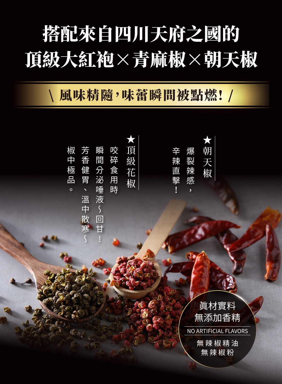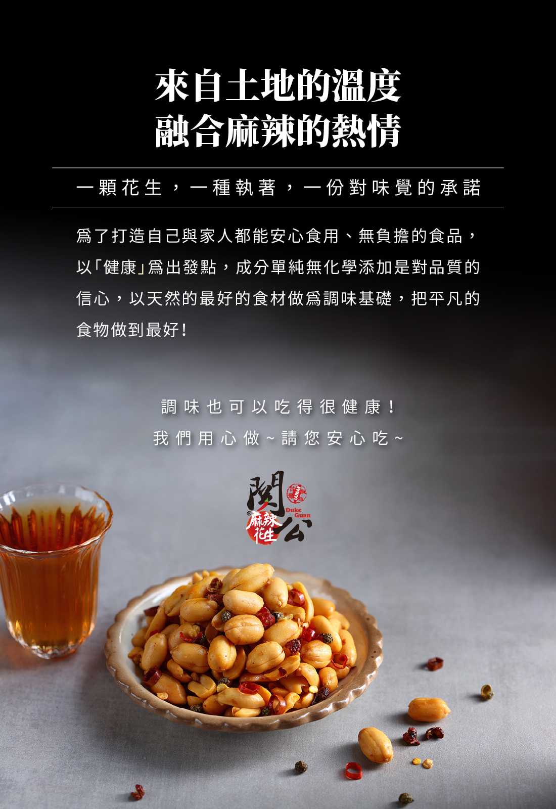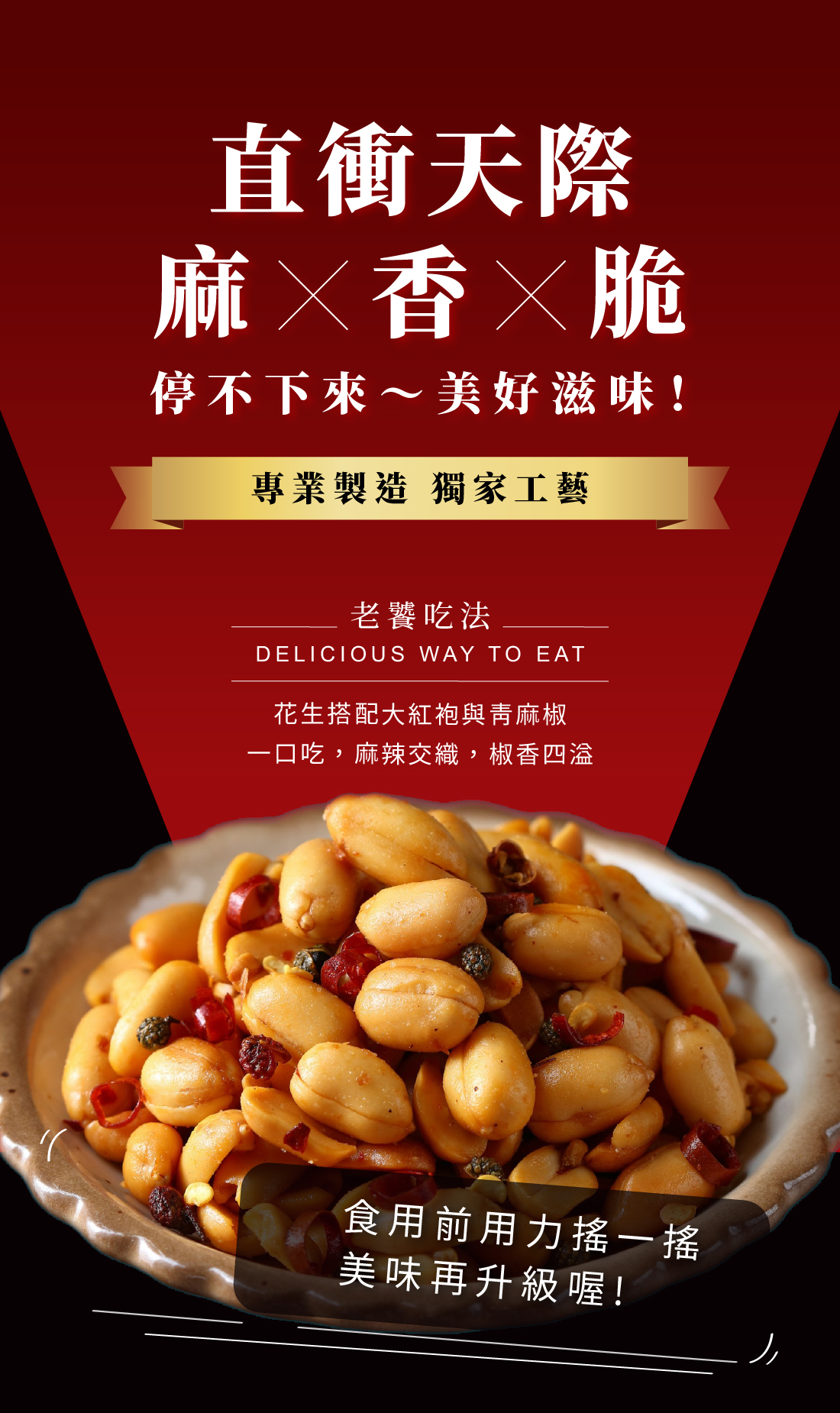 嚴選花生慢火拌炒,麻辣香氣層層堆疊,入口先香、後麻、再微辣,越吃越涮嘴。