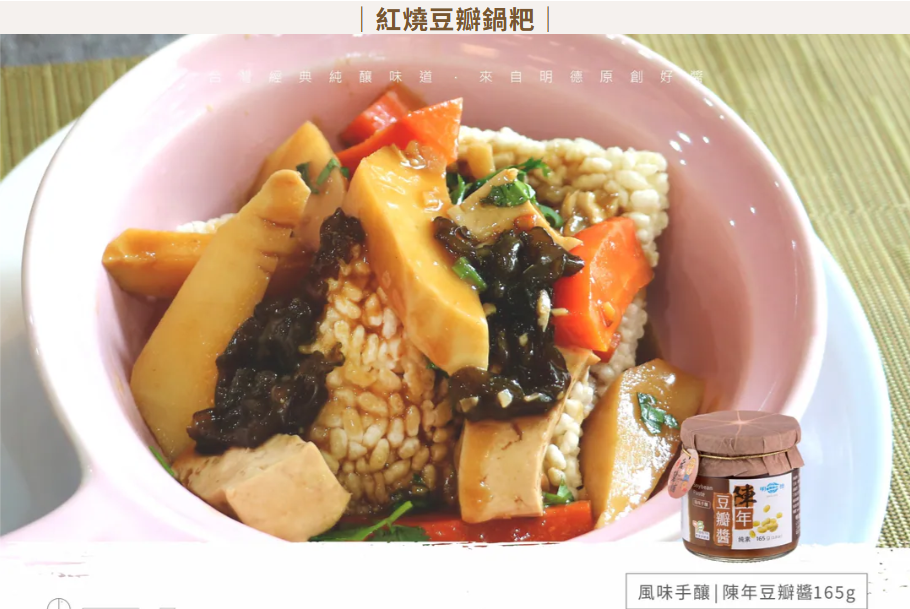 明德食品為全台第一家豆瓣醬創始店,坐落於高雄岡山至今已成立70餘年,其中經典的陳年豆瓣醬為本店創始產品之一。