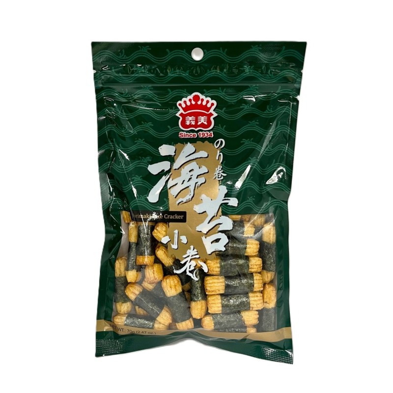 使用糯米製作,並搭配非基因改造黃豆製成的醬油,與海苔一同食用,爽脆可口風味無窮 !