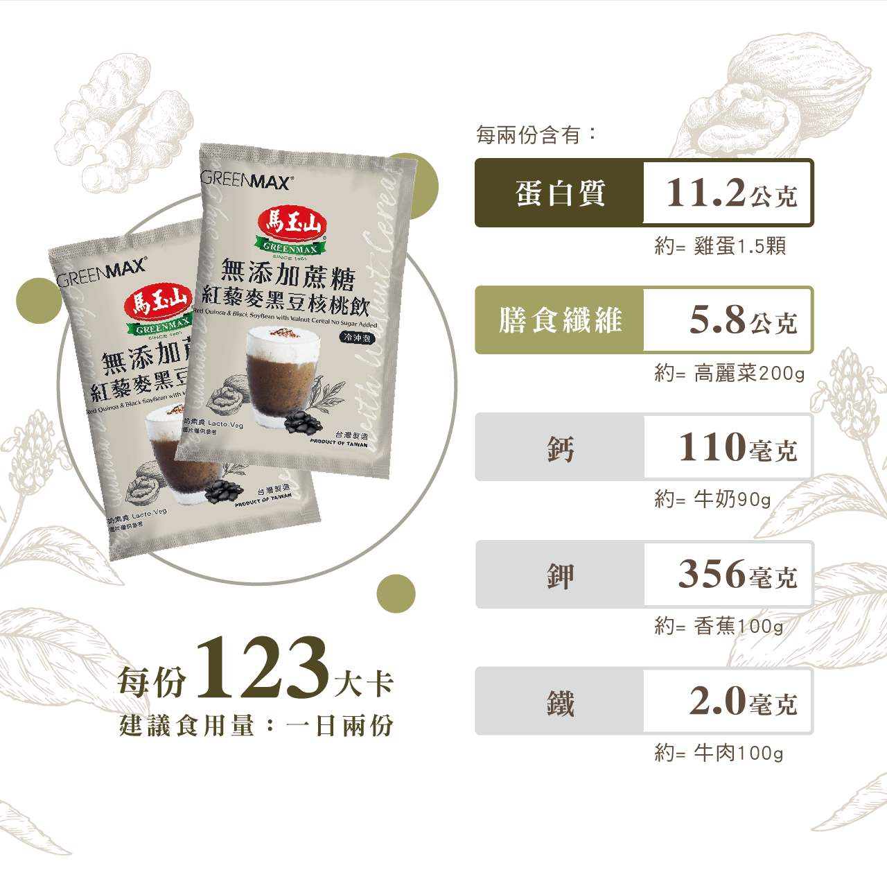 馬玉山 無添加蔗糖 紅藜麥黑豆核桃飲 360g/12